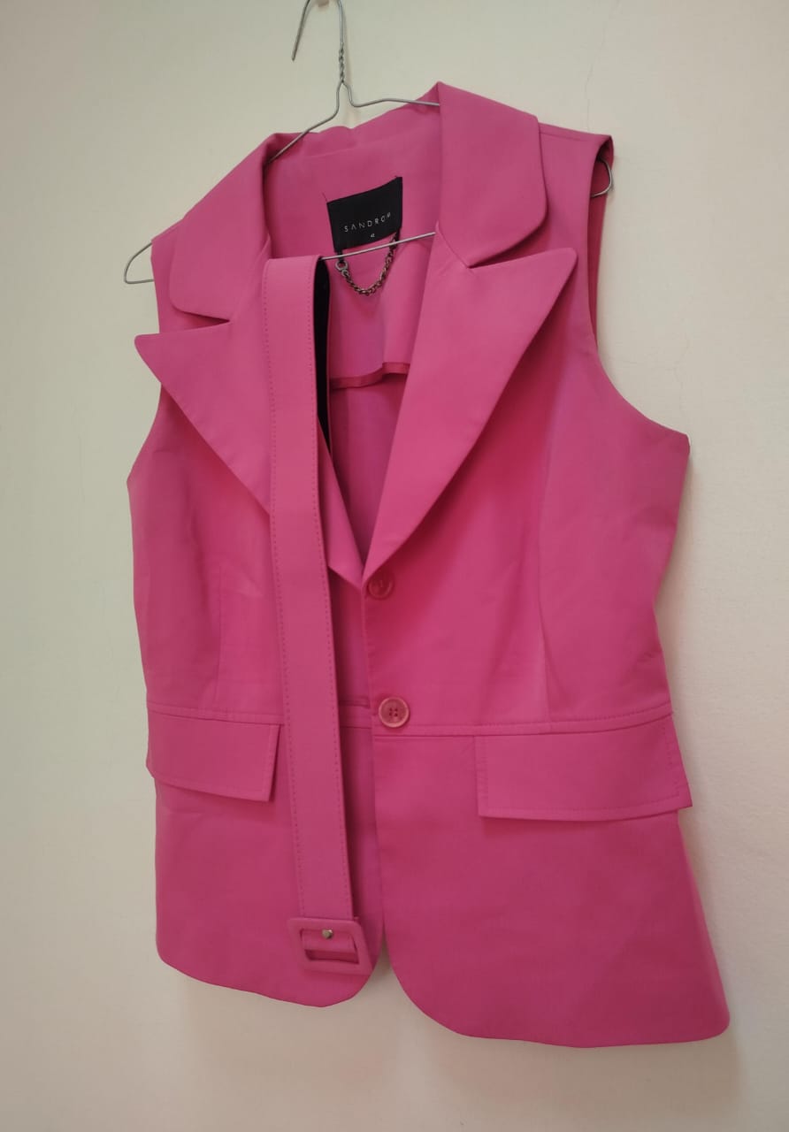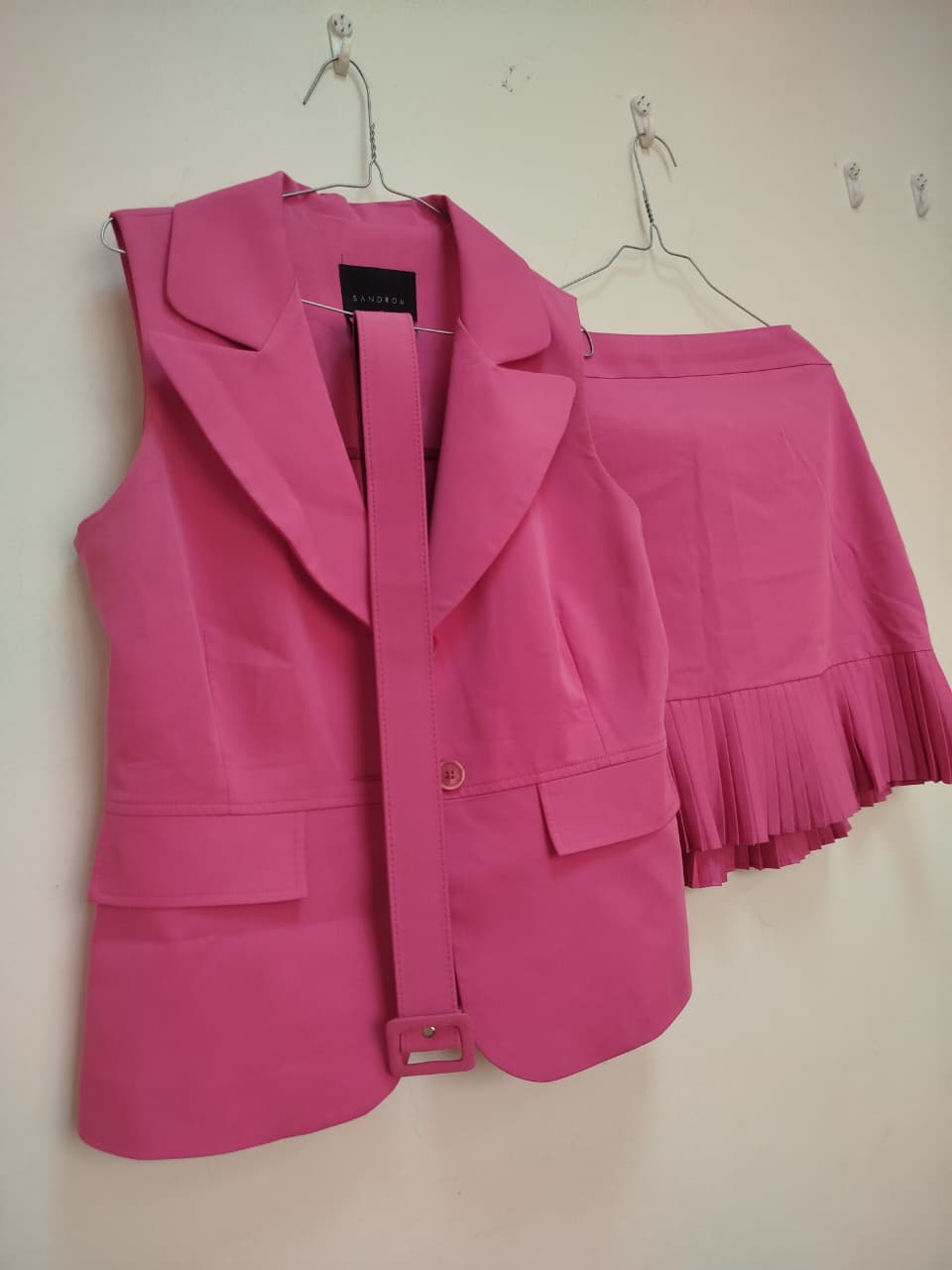 Affirmez votre style avec cet ensemble tailleur féminin et moderne en rose délicat.