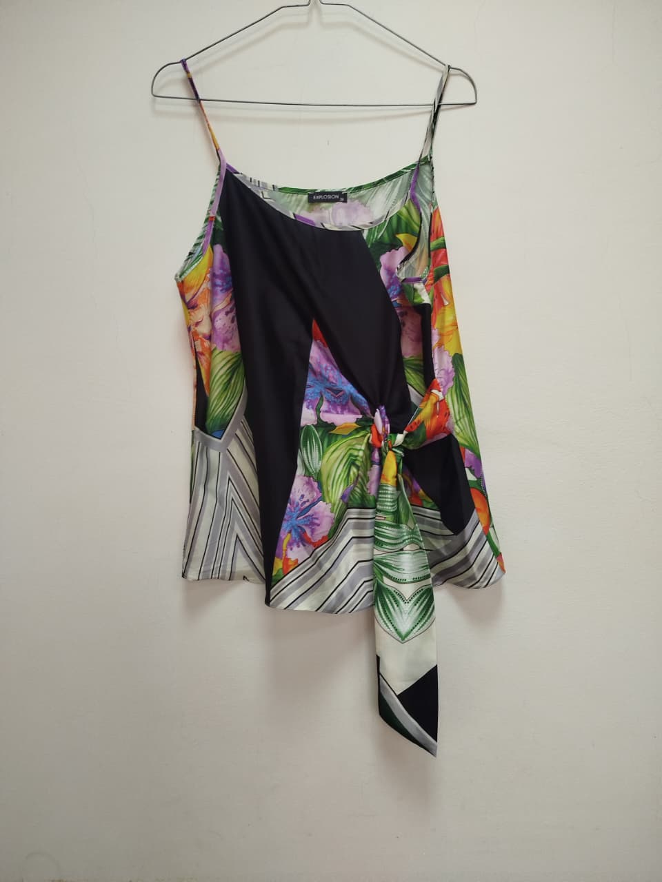 Ce look est une véritable invitation au voyage ! Le haut léger et coloré à motifs tropicaux 🌺🌿 apporte une touche fraîche et estivale, parfait pour illuminer vos journées ensoleillées. Sa coupe fluide et confortable met en valeur la silhouette tout en offrant une sensation de liberté et de légèreté.