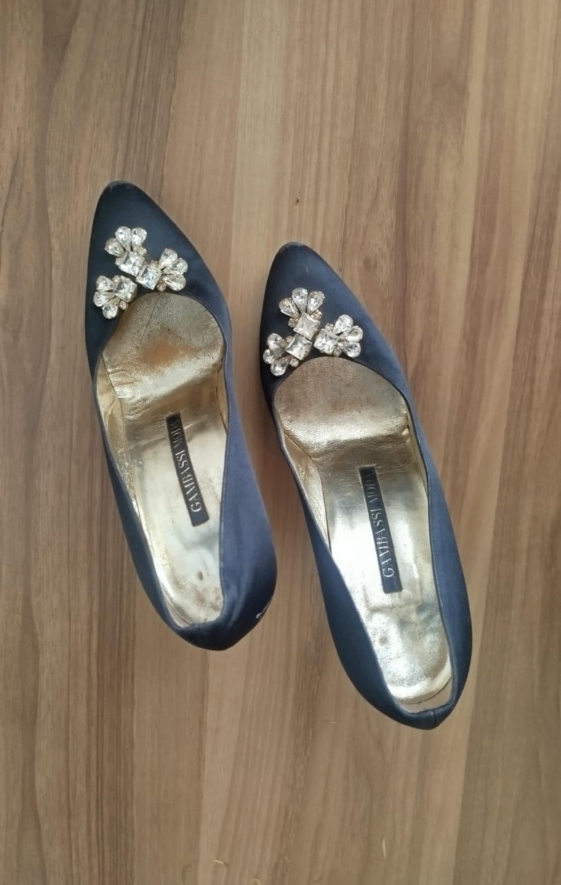Sophistiqués et féminins, ces escarpins en satin noir sont sublimés par une broche ornementale en perles et strass sur l’avant. Leur talon fin allonge la silhouette et leur style intemporel en fait un choix idéal pour les soirées habillées, les mariages ou les événements élégants.
