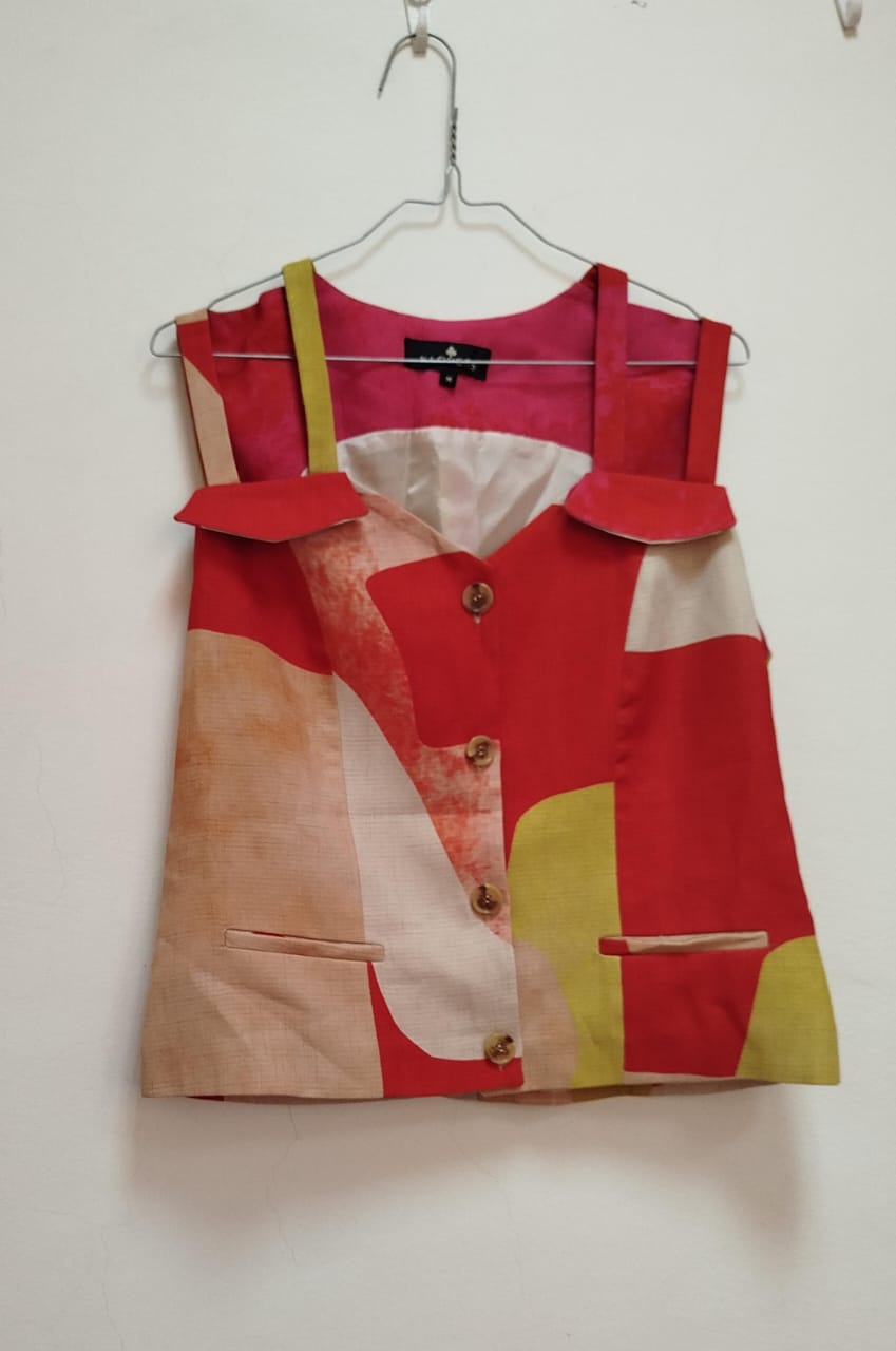 Ajoutez une touche artistique et moderne à vos tenues avec ce gilet sans manches original.