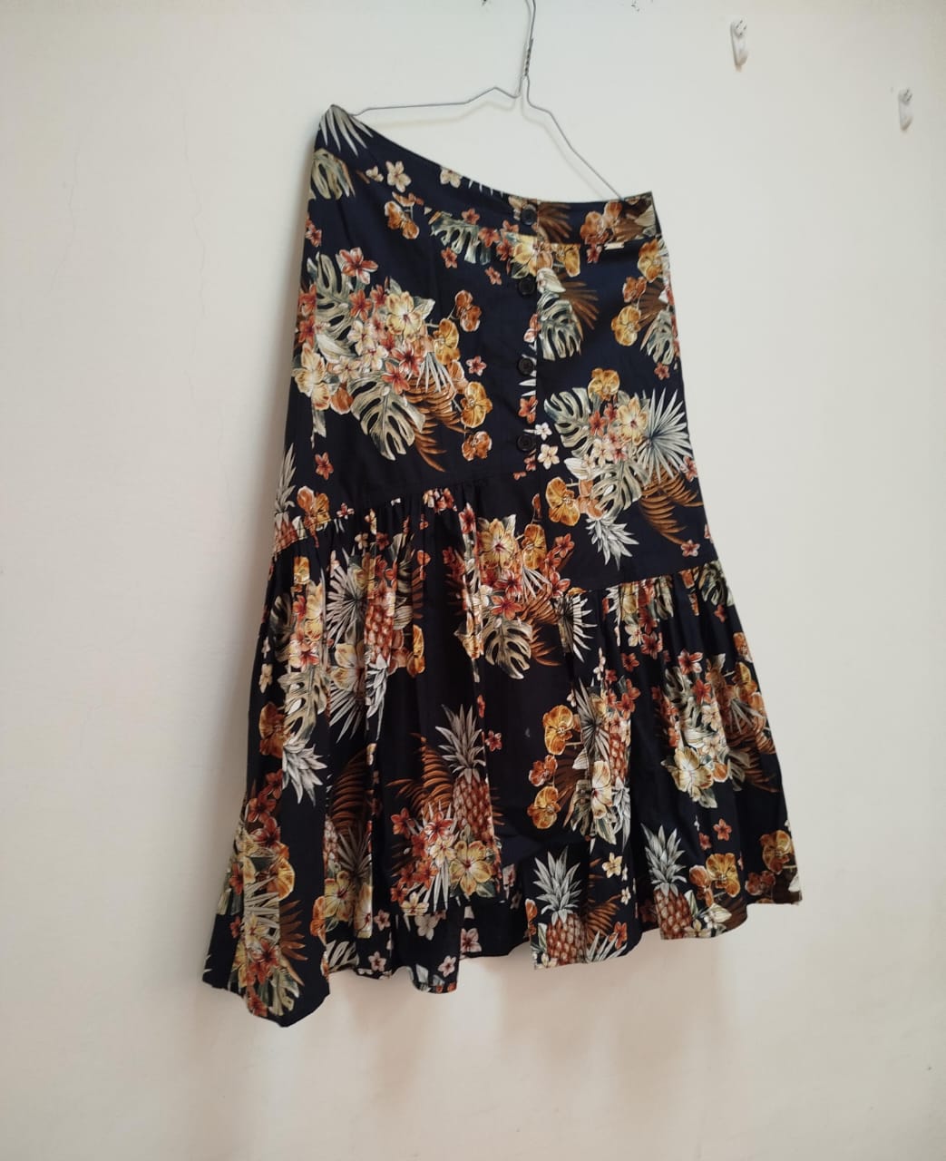 Cette jupe au charme estival séduit par son imprimé floral et tropical qui respire la fraîcheur et l’exotisme.