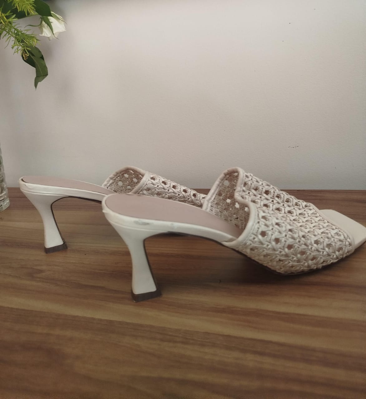Chics et légères, ces mules à talons arborent un tressage raffiné couleur crème et un bout carré tendance. Parfaites pour un look estival élégant, elles se portent aussi bien avec une robe fluide qu’un pantalon habillé.