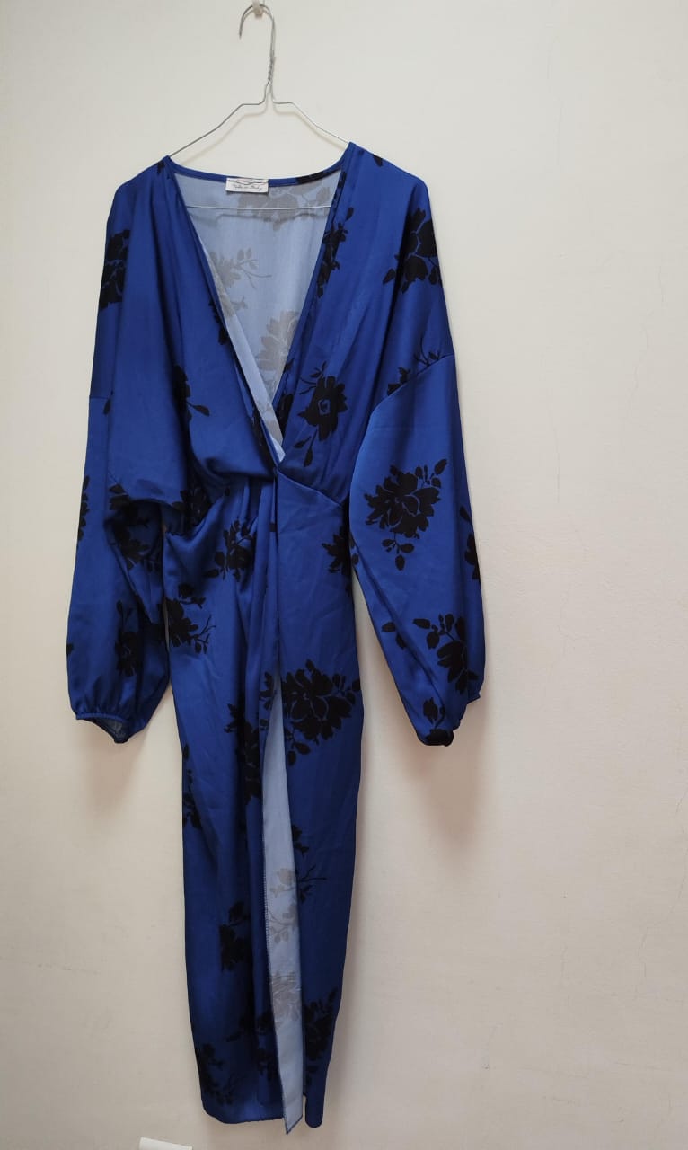 Bleu avec fleurs noires : pour un look lumineux et tendance.