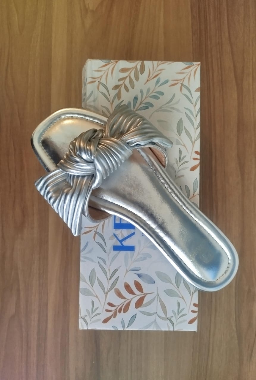 Apportez une touche d’éclat à vos tenues avec ces sandales plates couleur argent. Leur large nœud plissé sur le dessus leur confère une allure chic et féminine, parfaite pour un look estival élégant, du brunch en terrasse aux soirées décontractées. Confortables et légères, elles s’associent aussi bien à une robe fluide qu’à un jean.